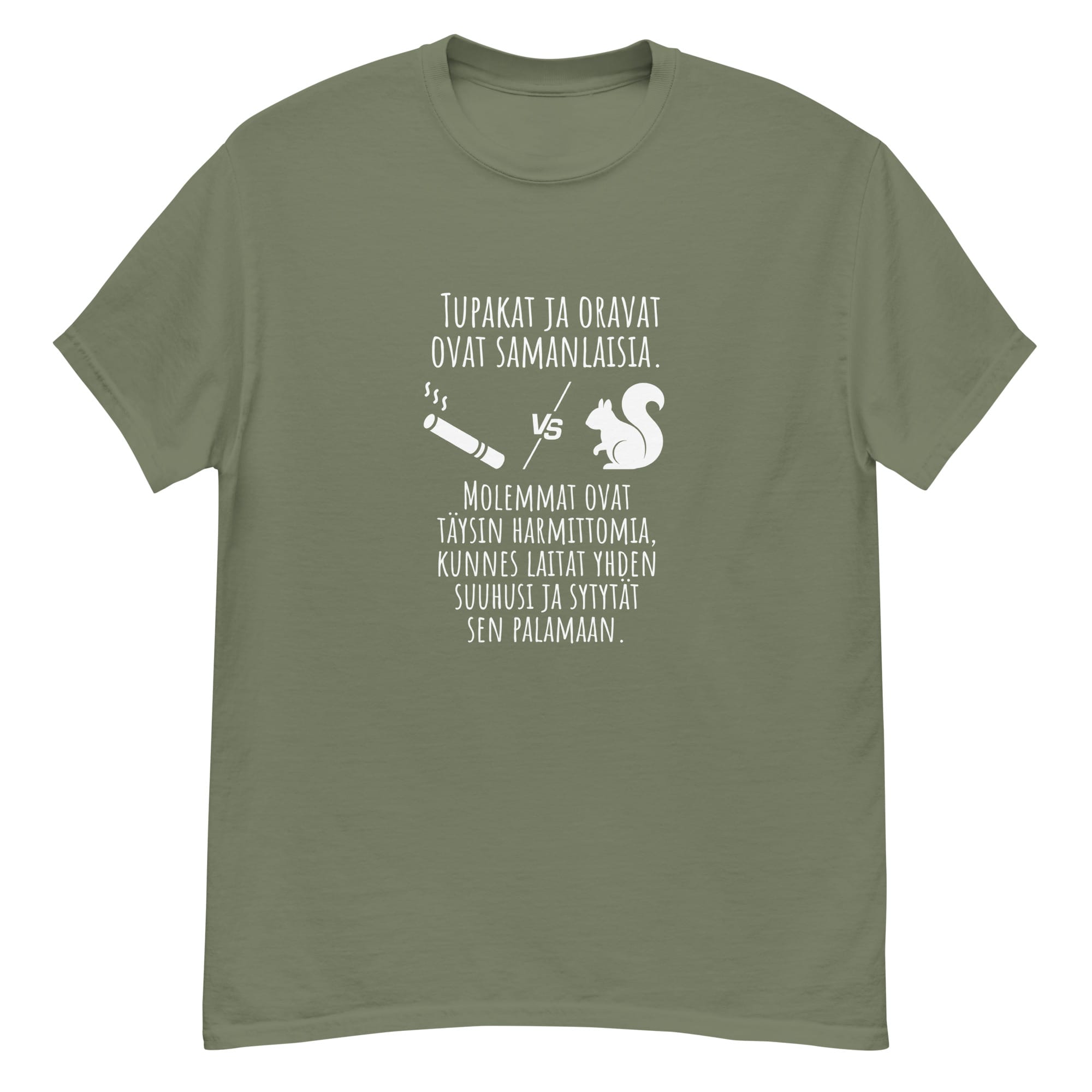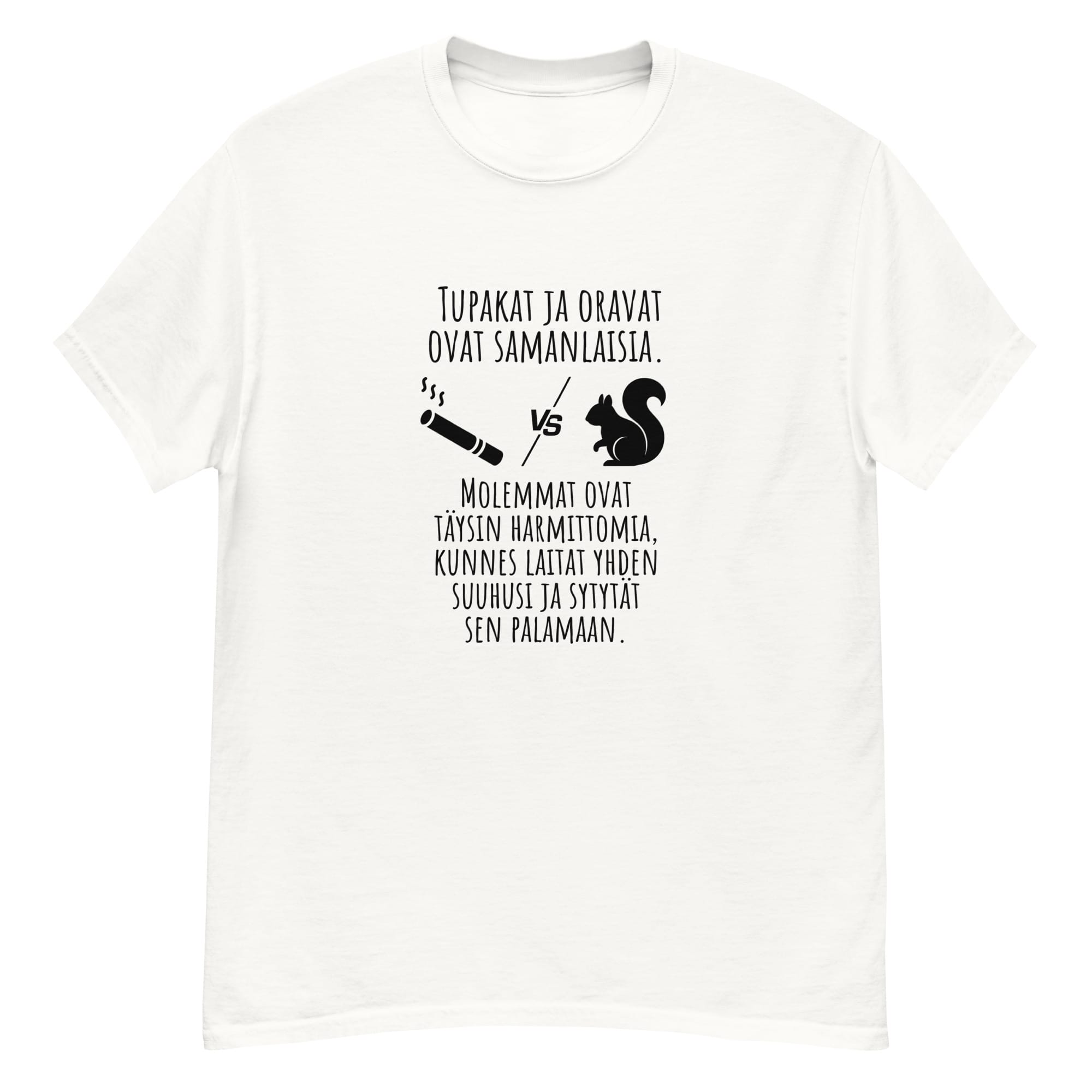 Tupakat ja oravat ovat samanlaisia… | T-paita – info & kokotaulukko